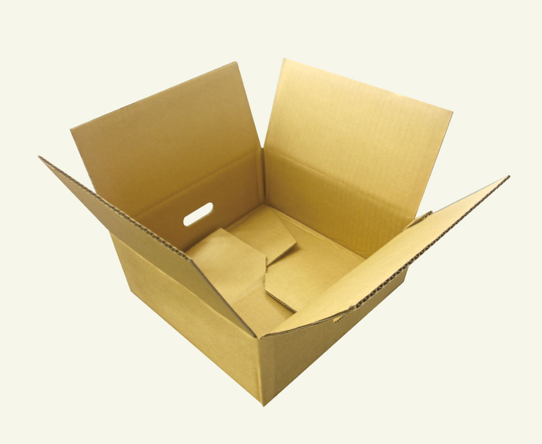 作業効率が高いワンタッチ式の段ボール箱。箱を開くと底が組み上がる仕組みで、梱包作業の時間短縮につながります。お好きなサイズでオーダーいただけます。 一例/サイズ:330×205×138H ロット数:40個 価格:¥5,000 納期:3日